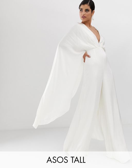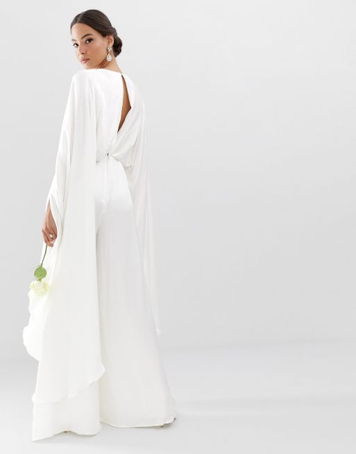Asos Edition Bruiloft Jumpsuit Met Capemouwen Van Satijn Asos