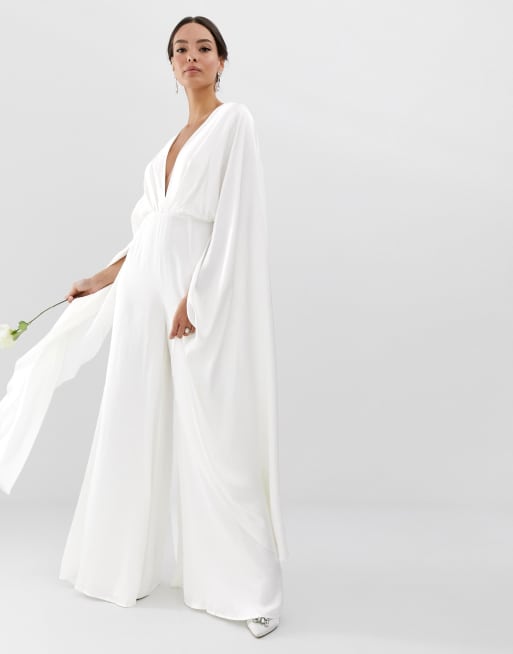 Asos Edition Bruiloft Jumpsuit Met Capemouwen Van Satijn