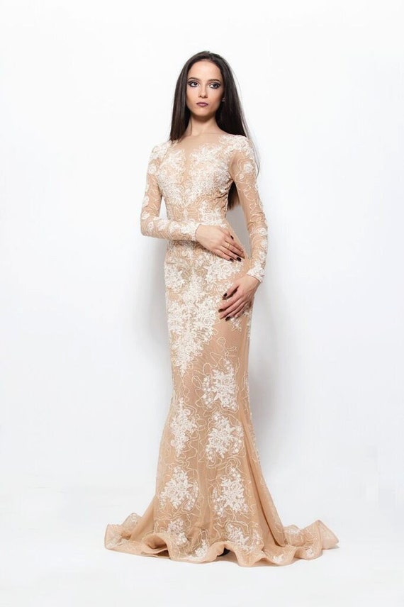 Beige En Wit Bruiloft Jurk Chique Trouwjurk Tulle Verfraaid Etsy