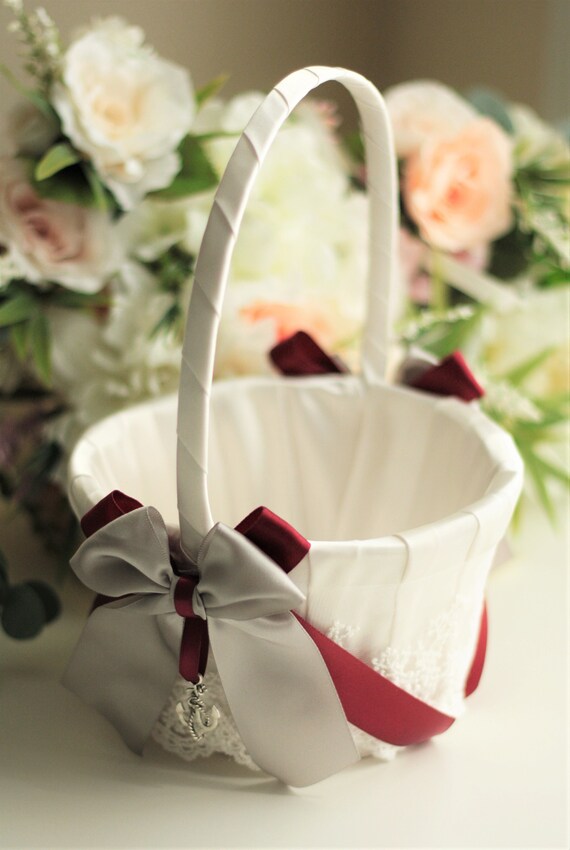 Gray Bruiloft Mand Grijs Bloemenmeisje Mand Voor Bloemen Rood Etsy