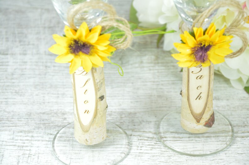 Bruiloft Champagneglazen Zonnebloem Bruiloft Glazen Rustieke Etsy