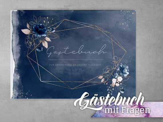 Gastenboek Bruiloft Rozen Met Vragen Donkerblauw Goud Etsy