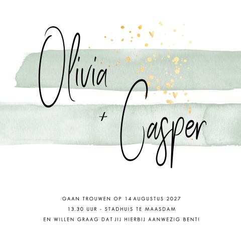 Hippe Uitnodiging Bruiloft Met Groene Aquarel Met Gouden Spetters