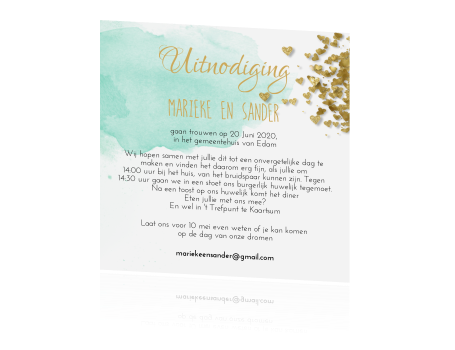 Uitnodiging Bruiloft Groene Aquarel Goud Hartje