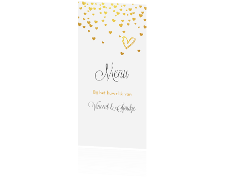 Staande Moderne Menukaart Enkel Met Gouden Hartjes