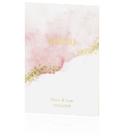 Enkele Menukaart Bruiloft Roze Aquarel Goudfolie