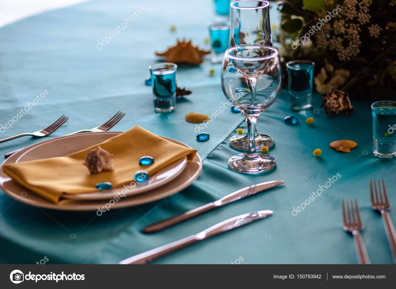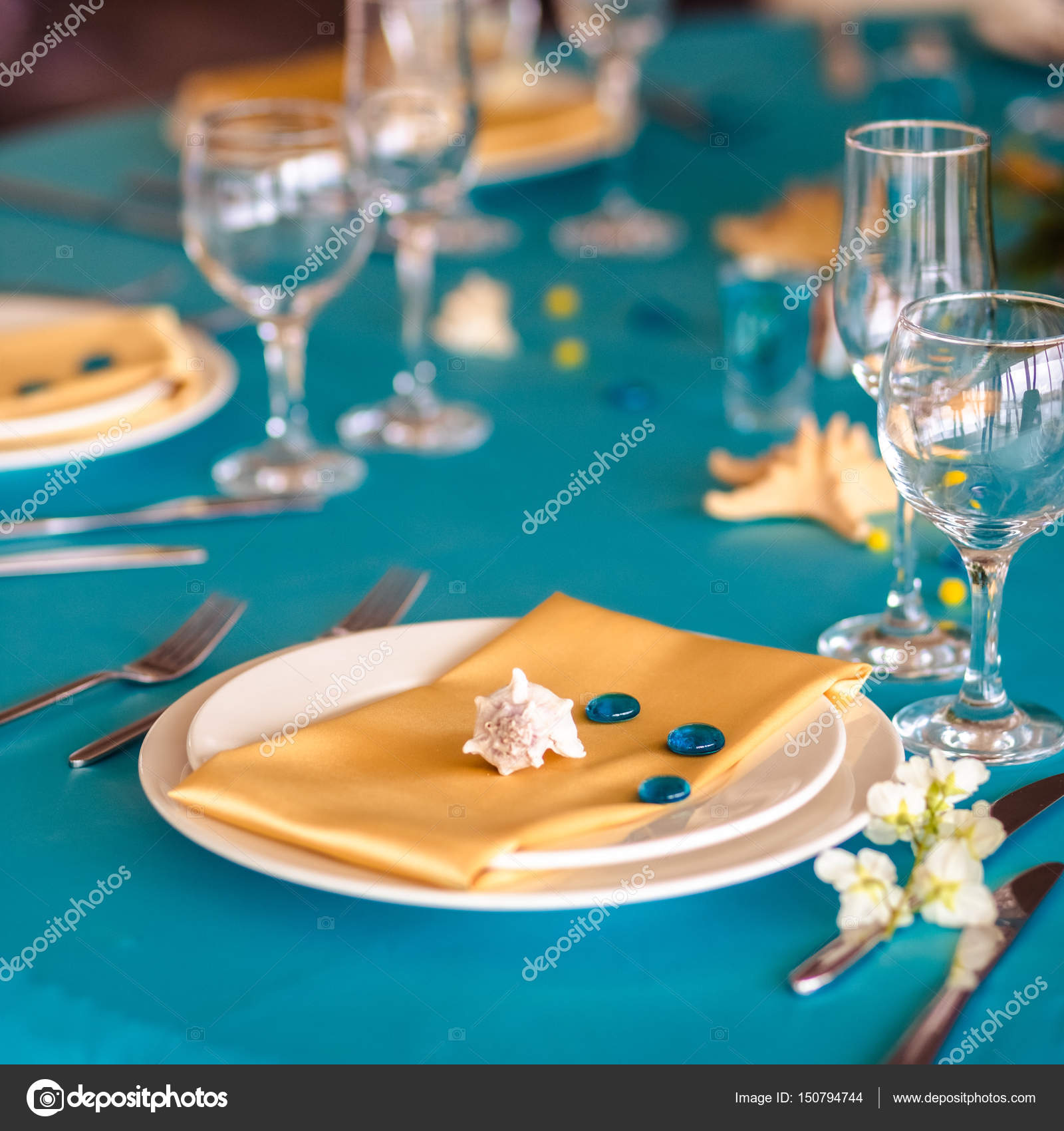 Wedding Decor In Blue Colors Sea Theme Style Stock Photo