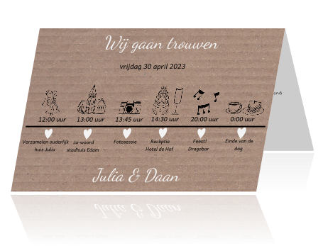 Kartonnen Uitnodiging Huwelijk Tijdlijn Met Icoontjes En Symbolen