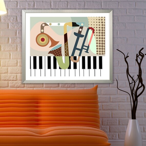 Saxofoon Piano Trompet Muziek Kunst Afdruk Decor Etsy